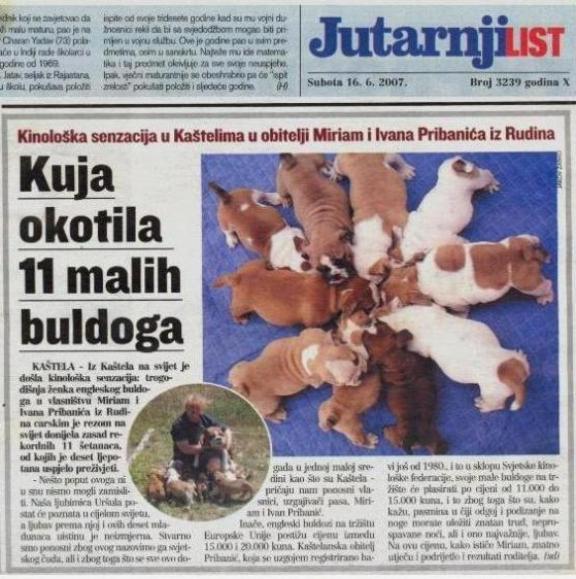 Kolovoz 2011: Pjevač GIBONNI je za svoju prezentaciju u novinama odabrao psa iz naše uzgajivačnice, radi se o našem engleskom buldogu imena WALPURGIS NIGHT BULL: